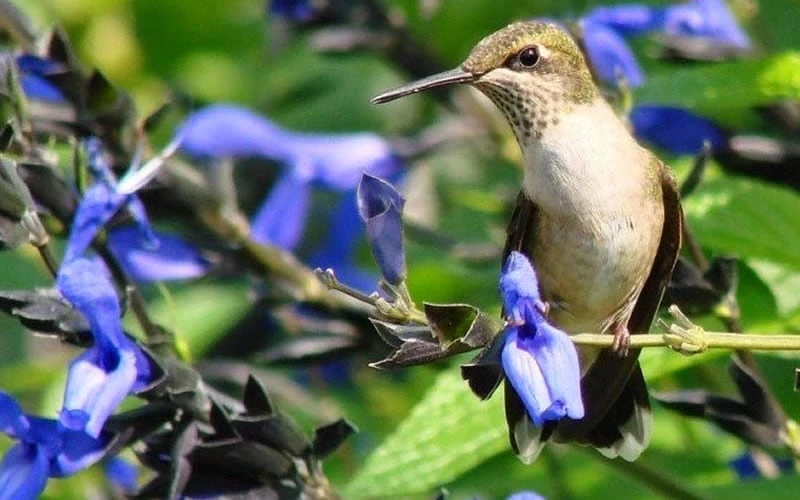 If you are looking for flowering plants that are absolutely sure to draw hummingbirds, Black & Blue Salvia is a “must-have” plant for your garden! A hardy perennial in USDA Zones 7a-10a, Black & Blue Salvia can be grown in garden beds or containers. In zones north of 7a, you can grow it as an annual or in containers that can be overwintered indoors.