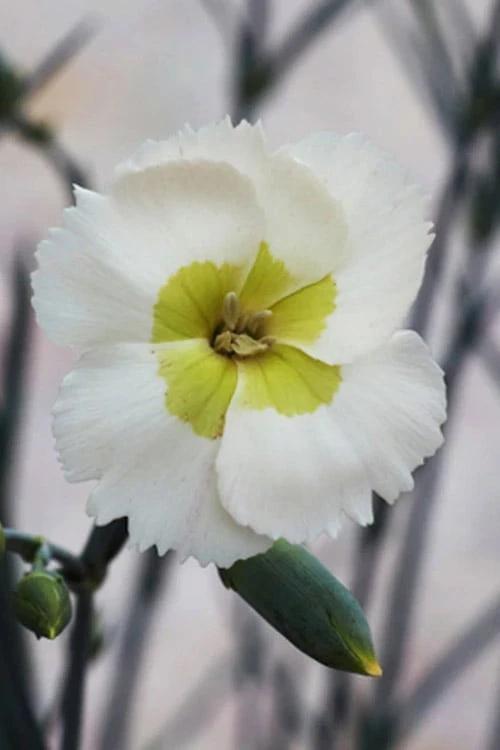 Dianthus Key Lime Pie is the ultimate cottage flower with a contemporary look on a classic plant! The delectable and refreshing pure white flowers with a lime-green eye are held on sturdy stems above grey-blue evergreen foliage that forms lush mounds in the garden. Perfect for long-lasting flowers and renowned cold and drought tolerance, and truly a benchmark of Dianthus breeding. You’ll be glad you indulged in this garden treat!