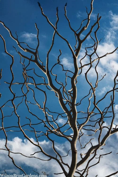 If you’re into the unique and unusual, meet ‘Zydeco Twist’, a truly twisted version of our native Black Gum tree, what some folks call Tupelo. It grows in an upright pyramidal form just like its parent but every branch, stem and twig is twisted and contorted for amazing eye appeal, especially during winter when the leaves are absent. Lush and shiny dark green wavy leaves during the warm season turn to showy yellow, orange and red shades in the fall. Make sure to plant this one near patios, decks and other outdoor living spaces where it can be viewed from close up and is sure to be a conversation piece.